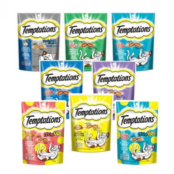 세계 1위 고양이용 간식, 템테이션! 클래식 6종과 새롭게 입고된 믹스업 2종까지 다양하게 만나보세요 :)