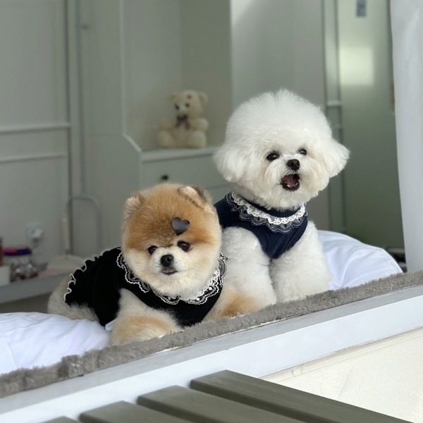 디어아지 강아지니트 플라워 프릴 민소매 레이스 옷 블랙