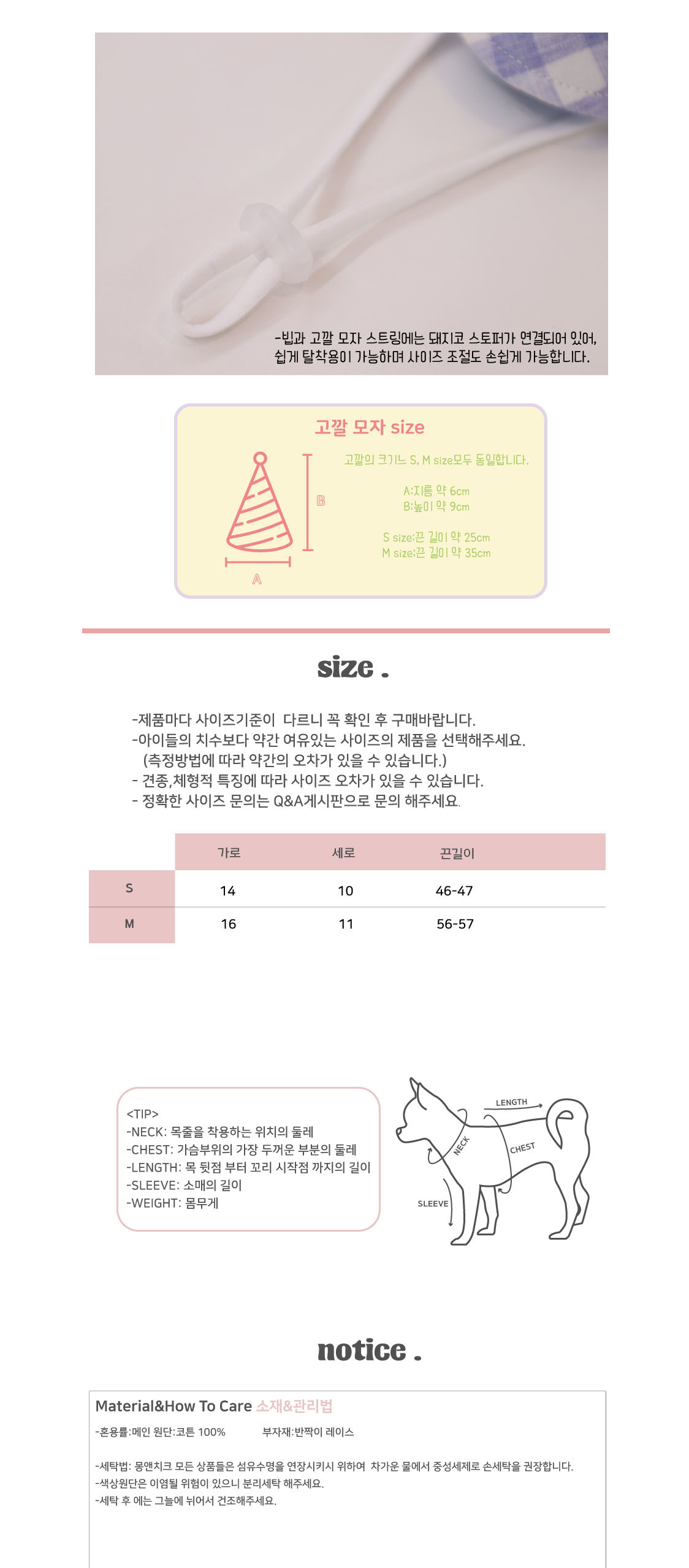 반려견 친구들의 털 길이나 원하시는 착용 핏에 따라 사이즈를 변경하여 선택하셔도 됩니다.