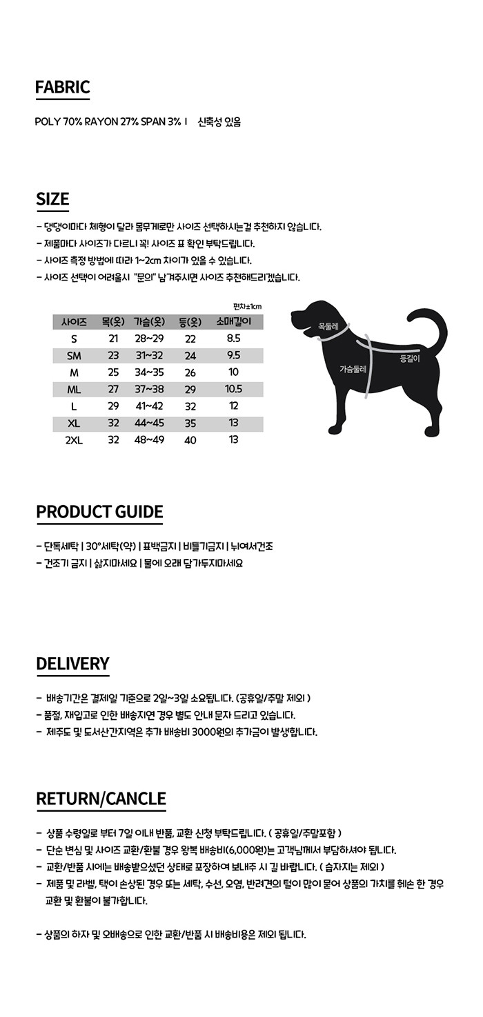 단,사이즈 작게 구매하시는 분들은 꼭 ! 목둘레, 등길이 체크 후 구매하세요!