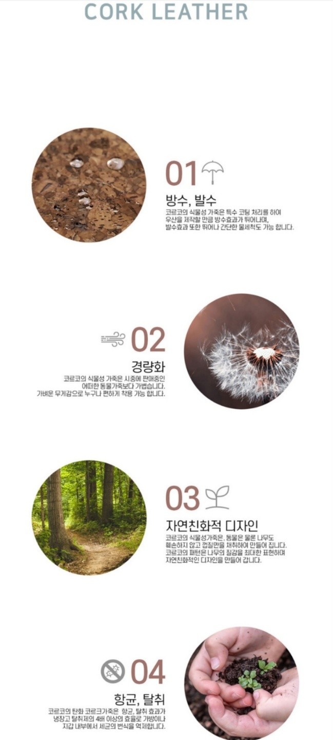 코르크 원단은 코르크 나무의 껍질만 채취하여 만든