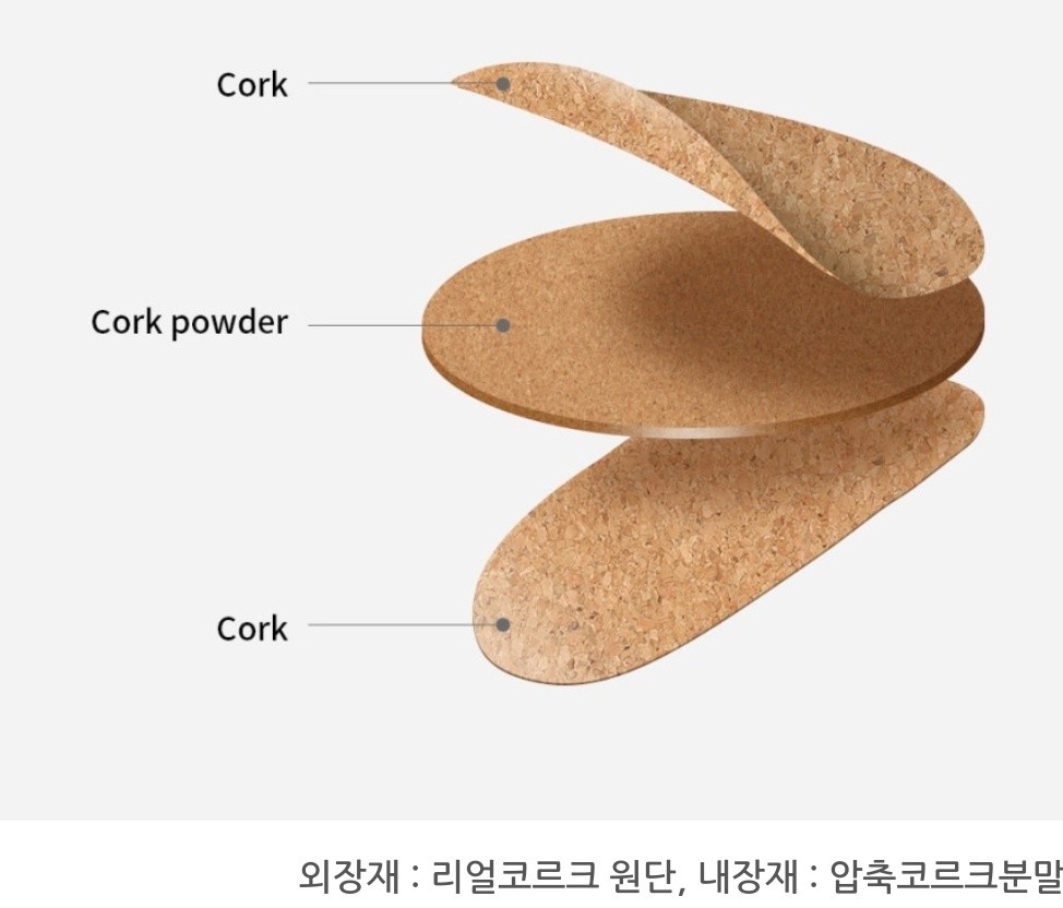cork원단과 원단 사이에 압축 코르크 분말을 넣어서 만든