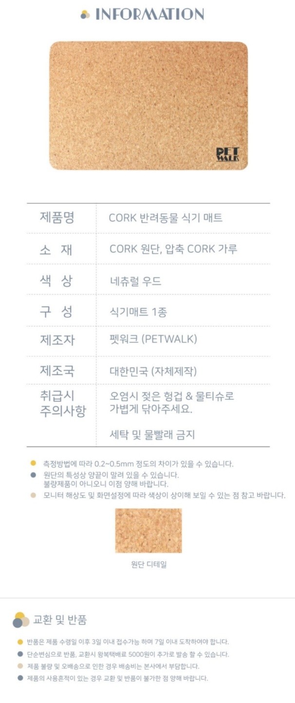 CORK 친환경 반려식기 매트